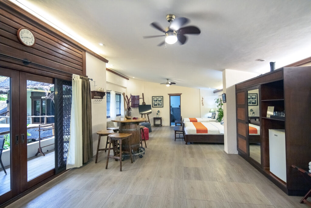 Beim Bau und bei der Einrichtung der Gebäude wurden viele lokale Materialien verwendet. Die Dächer sind aus „Nipa“, dem Blatt der einer Süßwasserpalme gebaut, die nur in ein paar Gegenden auf Bohol vorkommt. Viel Bambus findet auch Verwendung, um dem Resort einen natürlichen Look zu verpassen.
