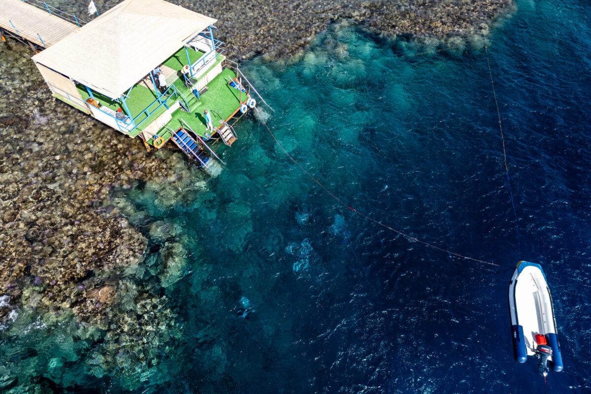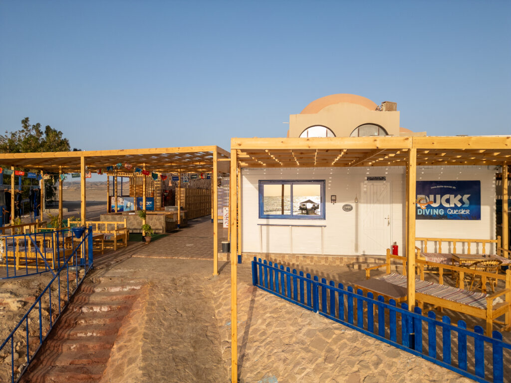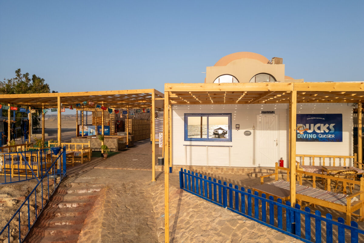 Ducks Diving Quesier liegt direkt in der geschützten Bucht von Serib Kebir, am Strand des Rohanou Beach Resort, mit seinem artenreichen und farbenfrohen Hausriff nur etwa 50 Meter weiter.