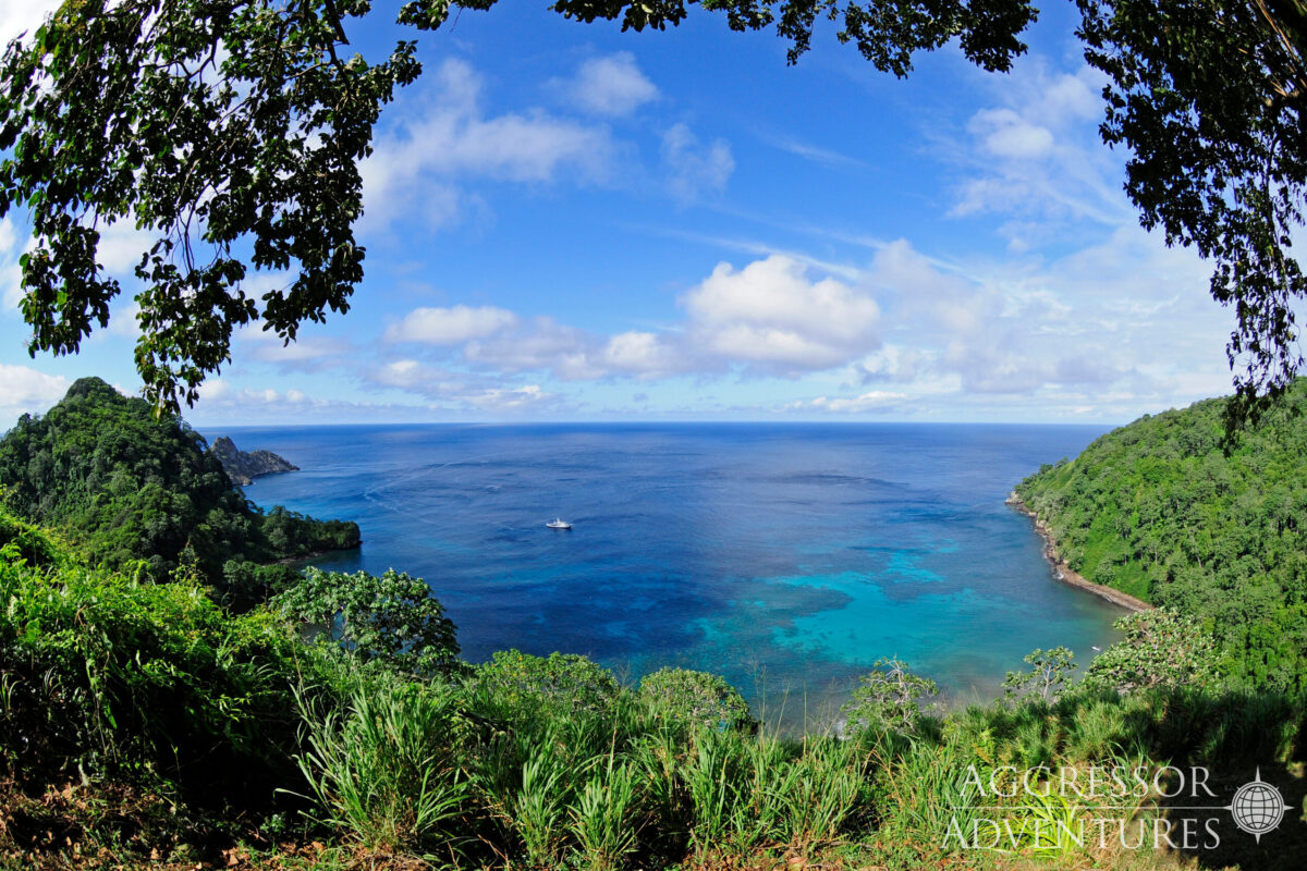 Im Norden der Insel gibt es zwei kleine Buchten, in denen die Tauchsafariboote ruhig ankern können. Die Chatham Bucht und die Wafer Bucht, die breite Täler bilden und ins Inselinnere führen. Die vielen Regenfälle bei den Inseln sorgen für eine üppige, undurchdringliche Vegetation, die das Bild einer Tropeninsel mitten im Pazifik einzigartig macht.