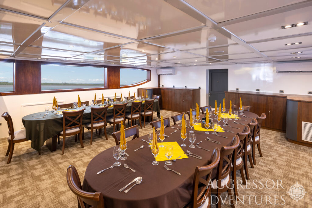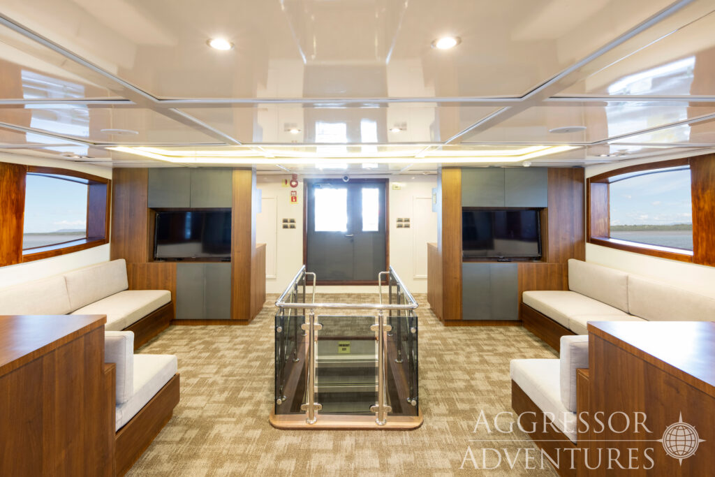 Die Cocos Island Aggressor verfügt über einen geräumigen Salon, ein großes Sonnendeck mit Whirlpool, Liegestühle und Sonnenschirme, eine Bar und einen Grill.