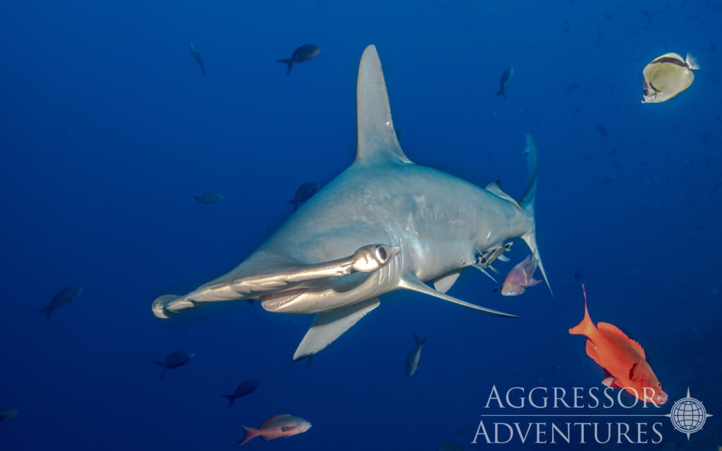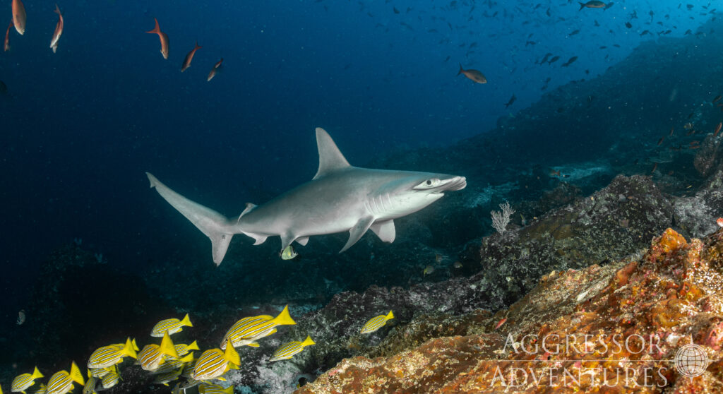 In den fischreichen Gewässern begegnet man vielen Haiarten wie Seidenhaie, Galapagos Haie, Hammerhaie, Tigerhaie und Weißspitzenriffhaie.