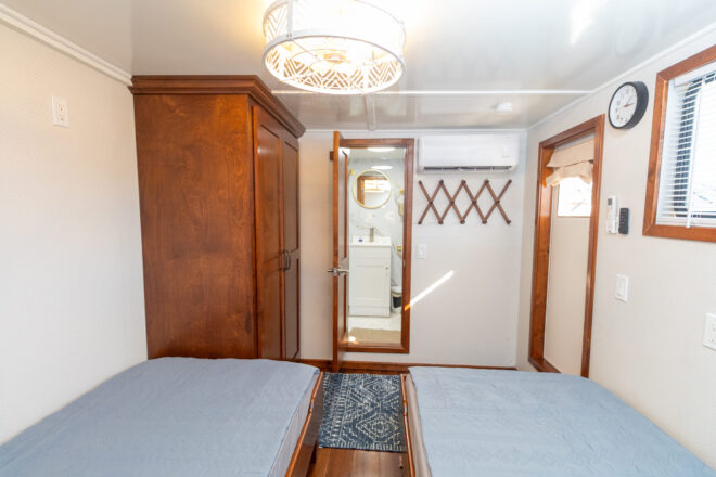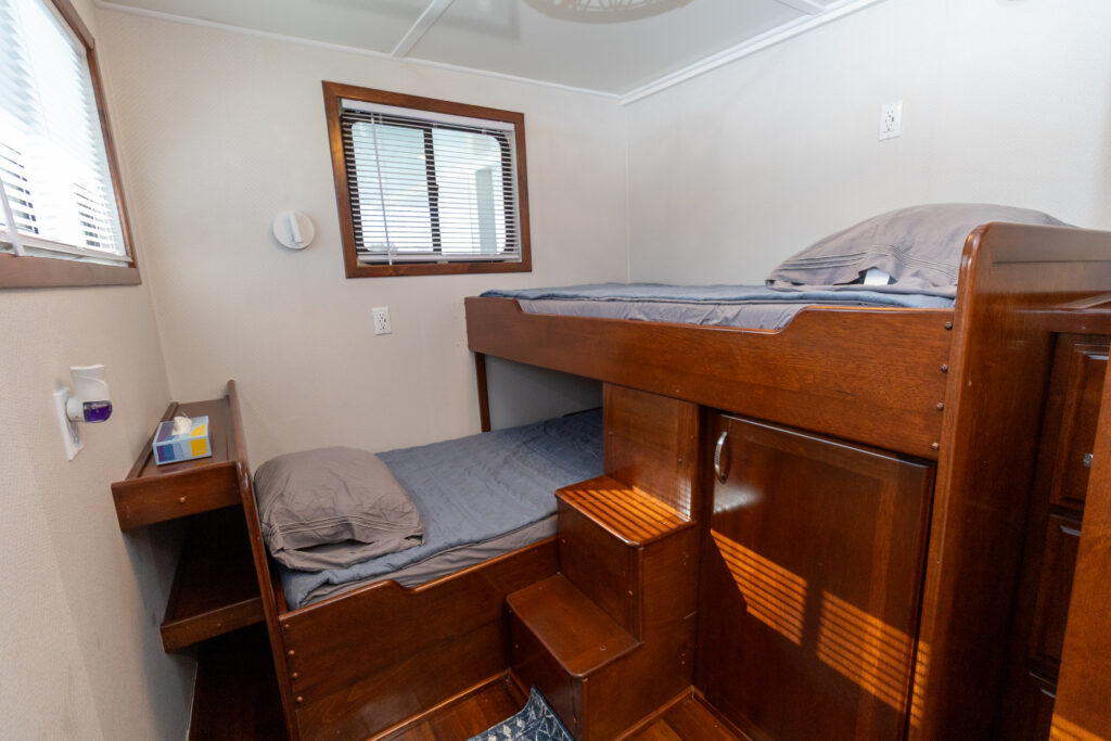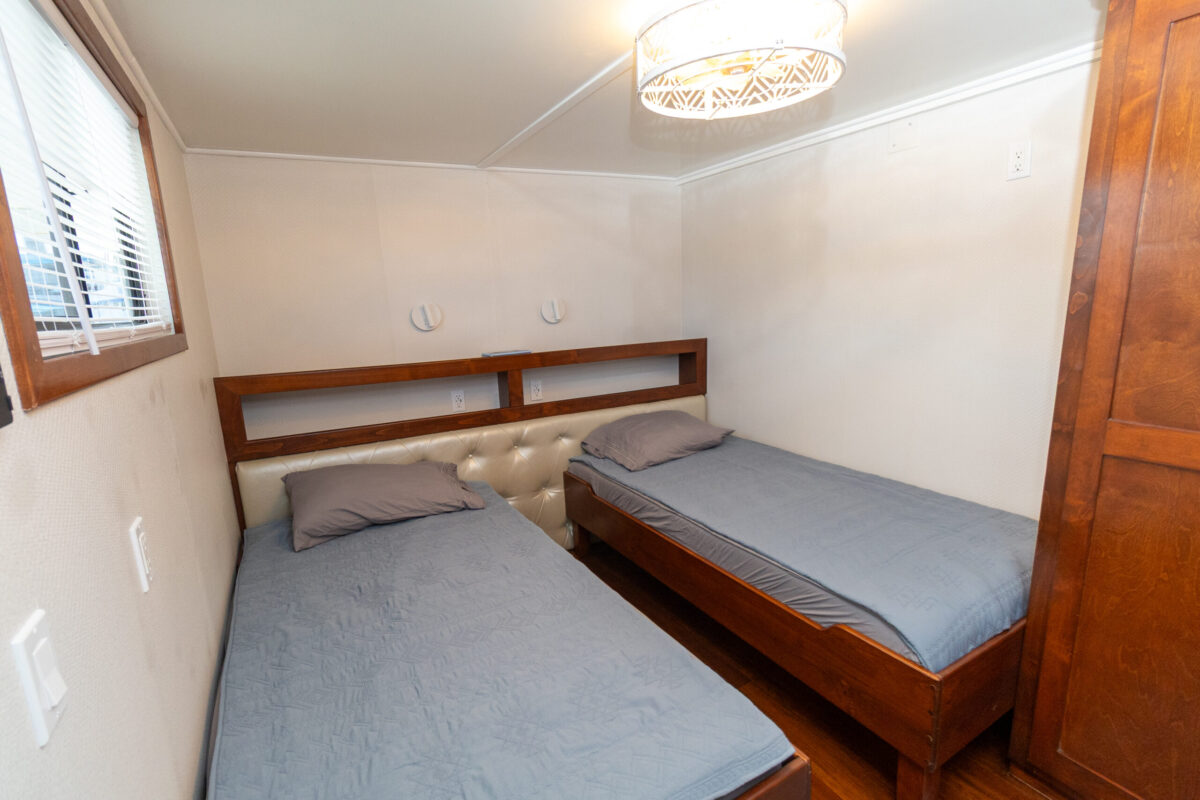 Kabine 1 – 6 am Oberdeck verfügen über 2 XL-Einzelbetten, die rechtwinkelig übereinander angeordnet sind. Kabine 7 und 8 am Oberdeck sind größer und mit 2 XL-Einzelbetten ausgestattet, die man auch zu einem King-Bed zusammenstellen kann. Kabine 9 und 10 am Unterdeck sind sehr geräumig und wurden mit jeweils 2 Queen-Size Betten gemütlich eingerichtet.