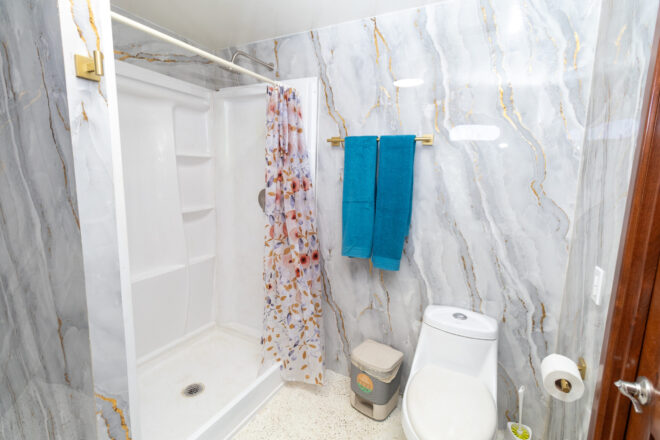 Alle Kabinen sind selbstverständlich mit privatem Badezimmer (Dusche und WC) ausgestattet.