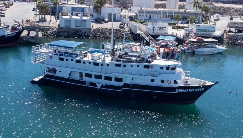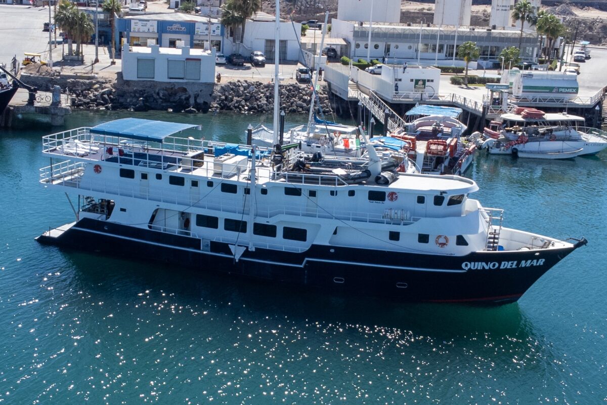 Im Juli 2025 frisch aus dem Trockendock verfügt das hochseetüchtige Schiff mit seiner stattlichen Länge von 36m lang und 8m Breite über alle „State of the art“ Sicherheitseinrichtungen. Eingebaute Stabilisatoren machen die eine oder andere längere Überfahrt ruhiger und angenehmer für uns Taucher. Die Quino del Mar ist ab sofort im Socorro Archipel und in der Sea of Cortez unterwegs.