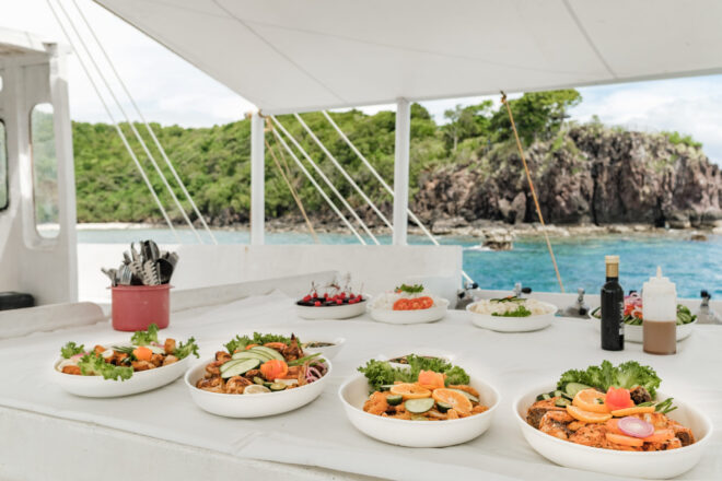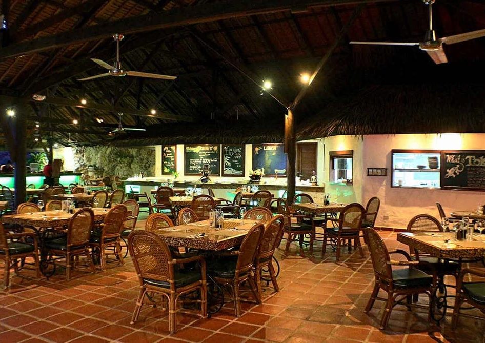 Direkt am Meer gelegen, serviert das hauseigene Restaurant Toko’s internationale Küche mit philippinischem Flair. Anstatt eines Buffets werden den Gästen täglich wechselnde Blackboard–Menüs mit jeweils mehreren Optionen zur Auswahl gestellt, darunter immer auch vegetarische und auf Wunsch vegane Varianten. Gekocht wird frisch und meist mit lokalen Zutaten.
