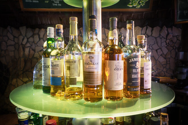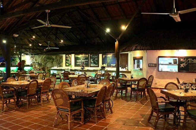 Die Beach-Bar bietet eine große Auswahl an internationalen Weinen, Cocktails, lokalen Bieren und frischen Fruchtsäften und eignet sich perfekte, um den Tag zur Happy Hour bei einem gemütlichen Plausch ausklingen zu lassen.