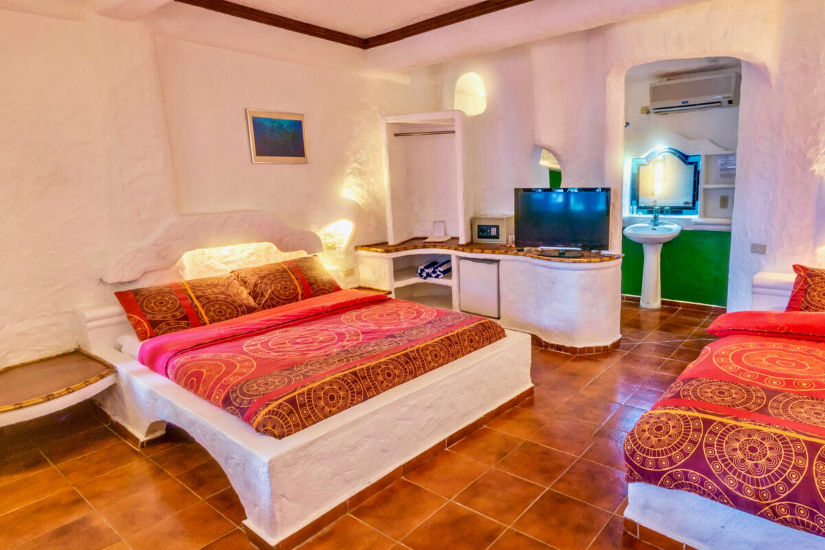 Die Unterkünfte im Atlantis Dive Resort verbinden Komfort mit philippinischem Design und sind buchbar in verschiedenen Kategorien. Einige Zimmer sind näher am Pool oder Restaurant, andere etwas ruhiger im hinteren Teil gelegen. Wer lärmempfindlich ist, sollte das bei der Buchung anmerken.