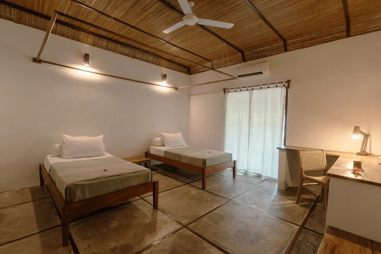 Für Familien oder befreundete Paare steht eine Gartenvilla mit 2 Schlafzimmern zur Verfügung. Ein gemeinsamer offener Wohnbereich mit zwei angrenzenden Superior-Zimmern bieten ausreichend Rückzugsmöglichkeiten. Zur Ausstattung gehören Kingsize-Betten, Klimaanlage und Deckenventilator. Jedes Schlafzimmer verfügt über ein eigenes Badezimmer. Eines der beiden Zimmer kann mit einem Zustellbett ergänzt werden. Ein Wasserspender mit heißem und kaltem Trinkwasser sowie kostenloser Kaffee und Tee stehen frei zugänglich im gemeinsamen Wohnbereich zur Verfügung. Hier können max. 5 Personen untergebracht werden.