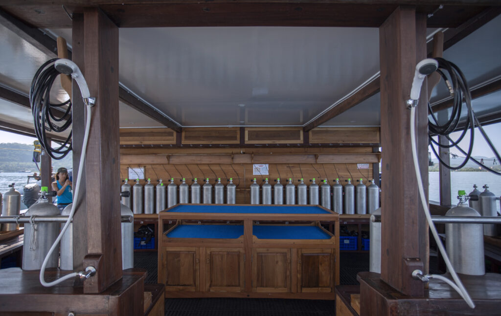 Alle Tauchgänge werden von zwei großen Beibooten aus durchgeführt. Leihausrüstung ist gegen eine Gebühr erhältlich. Nitrox und DIN-Adapter sind verfügbar. Nitrox ist kostenlos. Die Crew spricht englisch. Pro Tauchtag werden bis zu drei Tauchgänge angeboten.