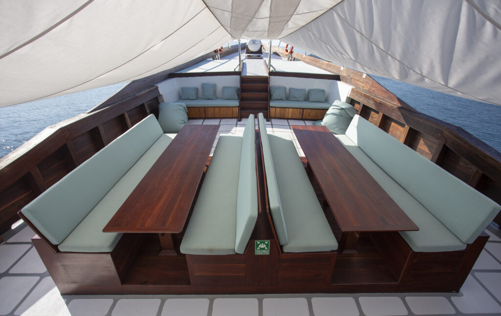 Die Mahlzeiten an Bord werden in der Regel in Buffet-Form serviert, mit einer Auswahl an indonesischen und internationalen Gerichten für jeden Geschmack. Die indonesische Küche ist traditionell etwas scharf, Fisch ist an Bord erhältlich. Wasser, Tee und Kaffee sind kostenlos. Softdrinks, frische Säfte und Alkohol (Cocktails, Spirituosen, Wein und Bier) sind kostenpflichtig. Wenn du spezielle Wünsche hast, z. B. nach vegetarischer Kost, oder wegen Allergien, können diese berücksichtigt werden.