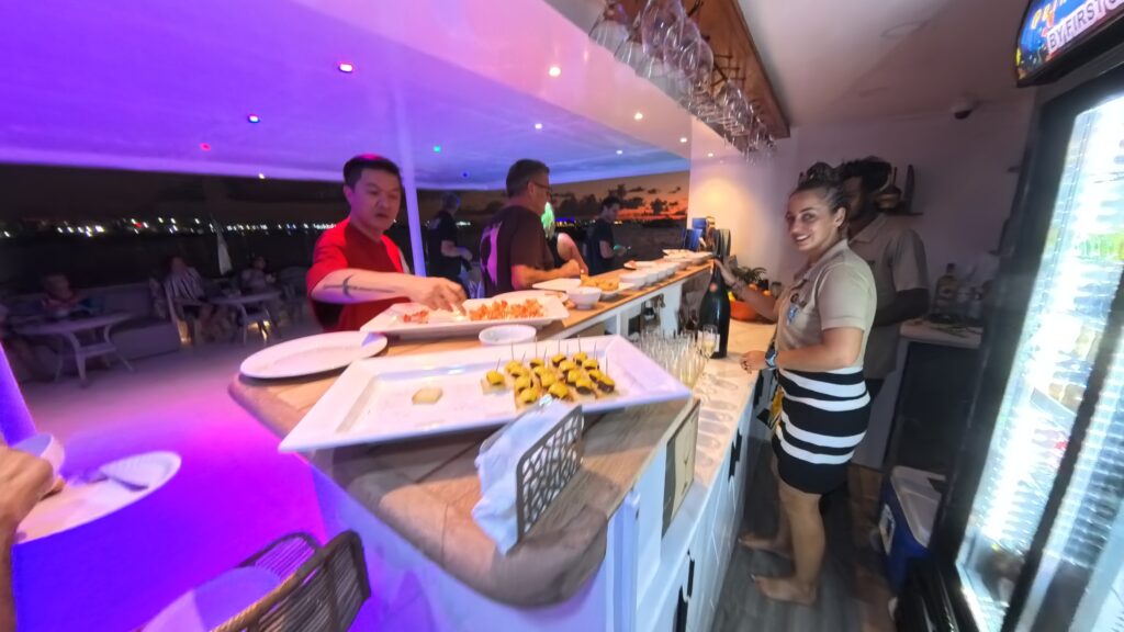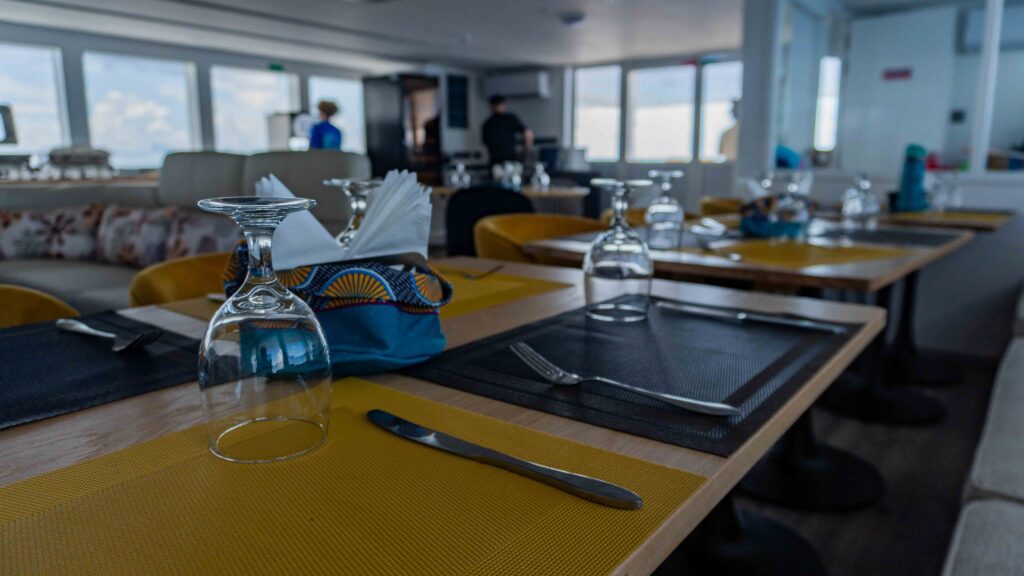 Für Abwechslung sorgen gelegentliche Beach‑BBQs (wetterabhängig) und Al‑Fresco‑Dinner. In der Kombüse arbeiten zwei Köche, die ihre Gäste mit viel Liebe zum Detail verwöhnen.