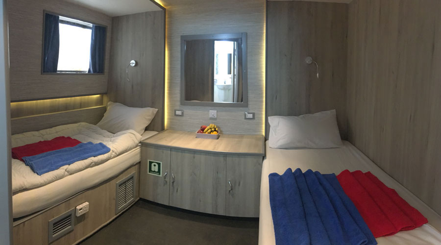Das Safariboot bietet in 6 Kabinen auf dem Haupt- und 4 Kabinen auf dem Oberdeck, insgesamt ausreichend Platz für 20 Gäste. Alle Kabine haben eine Klimaanlage, genügend Stauraum, ein großes Fenster und natürlich ein eigenes Bad mit Dusche und WC.